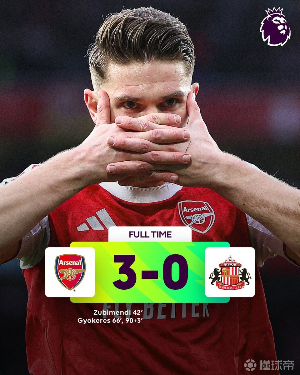 此役主场对阵桑德兰,阿森纳凭借哲凯赖什上演梅开二度和苏比门迪打入一球,以3-0的比分大胜对手。